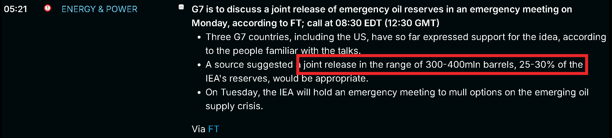 Oil Prices Drop as the G7 Considers Releasing Up to 400 Million Barrels